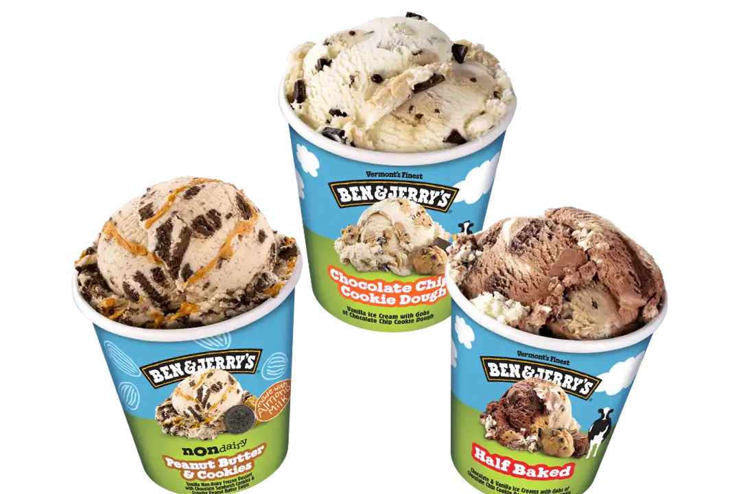 Las coloridas pintas de Ben & Jerry’s son reconocidas en todo el mundo, pero al inicio, solo podías comprar Ben & Jerry’s en copas y conos en la tienda Scoop de Burlington, Vermont. Ben tuvo la genial idea de envasar sus icónicos sabores de mantecados en envases de una pinta y venderlo en las tiendas comestibles. ¡El resto es historia! Todavía envasamos las 16 onzas llenas de los trozos eufóricos y los remolinos por los que somos conocidos.